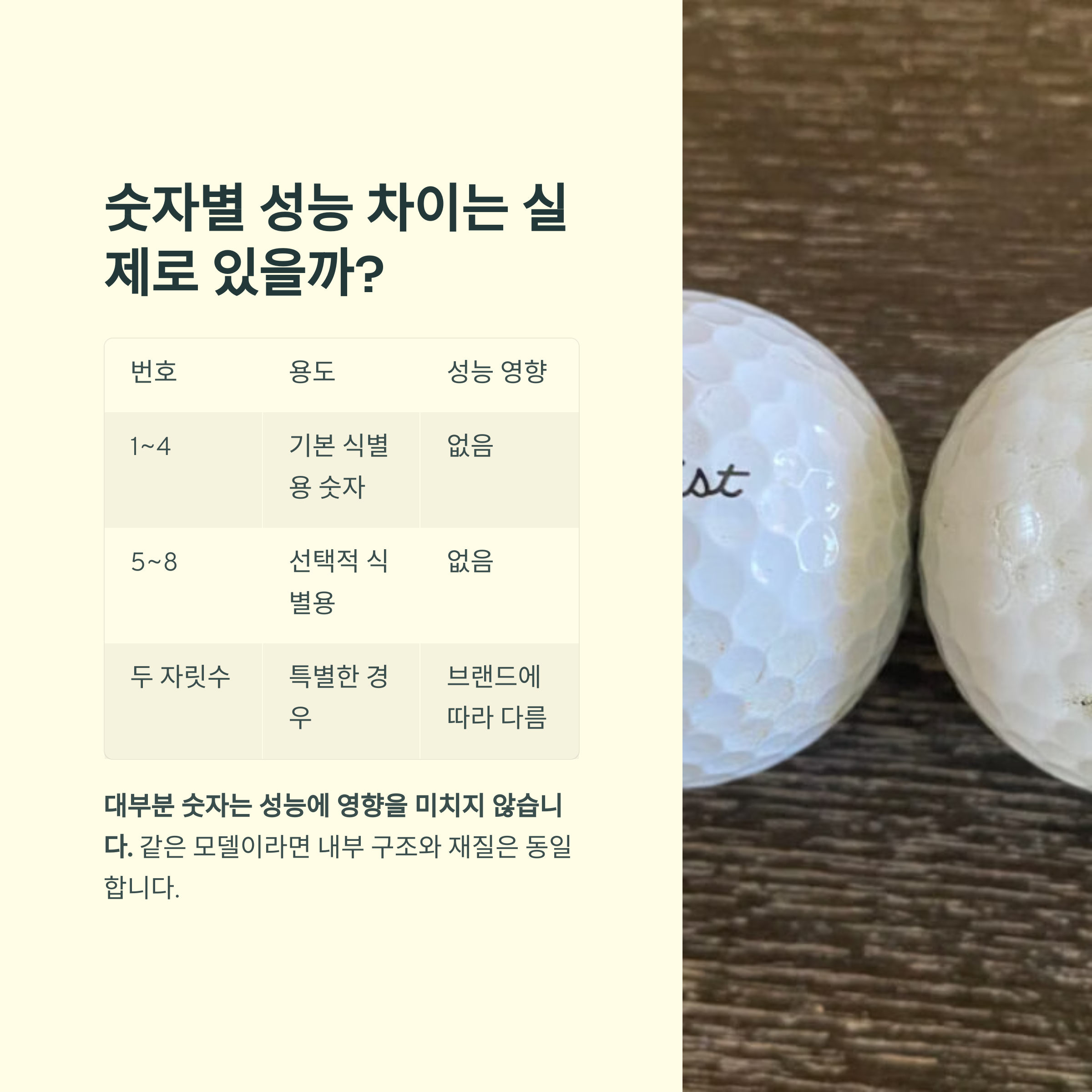 다만 일부 브랜드는 숫자를 통해 압축도(Compression)나 스핀 특성을 구분하기도 합니다.