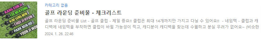 | [광고]골프 라운딩 준비물 - 체크리스트 (0) | 2024.01.26 |