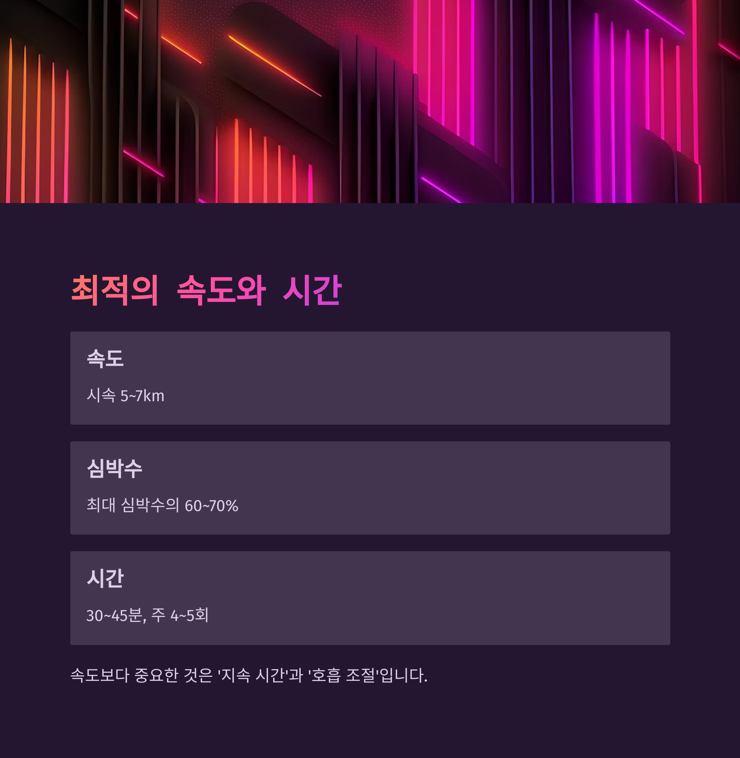 핵심은 일정한 속도와 호흡을 유지하며 몸에 무리가 가지 않도록 하는 것입니다.