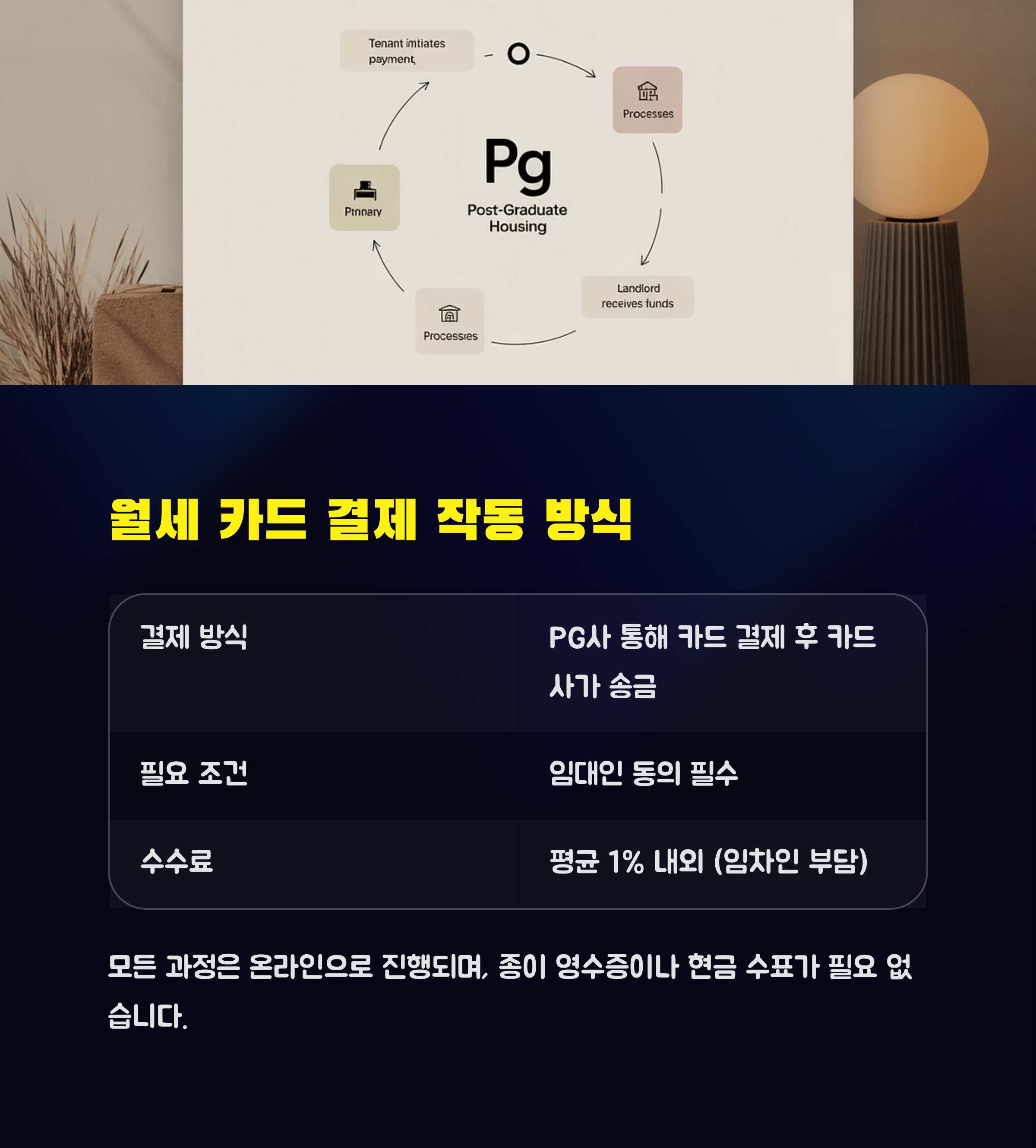 현금이 부족한 달에도 카드 한 장이면 월세 납부가 가능하다는 건 큰 장점입니다.