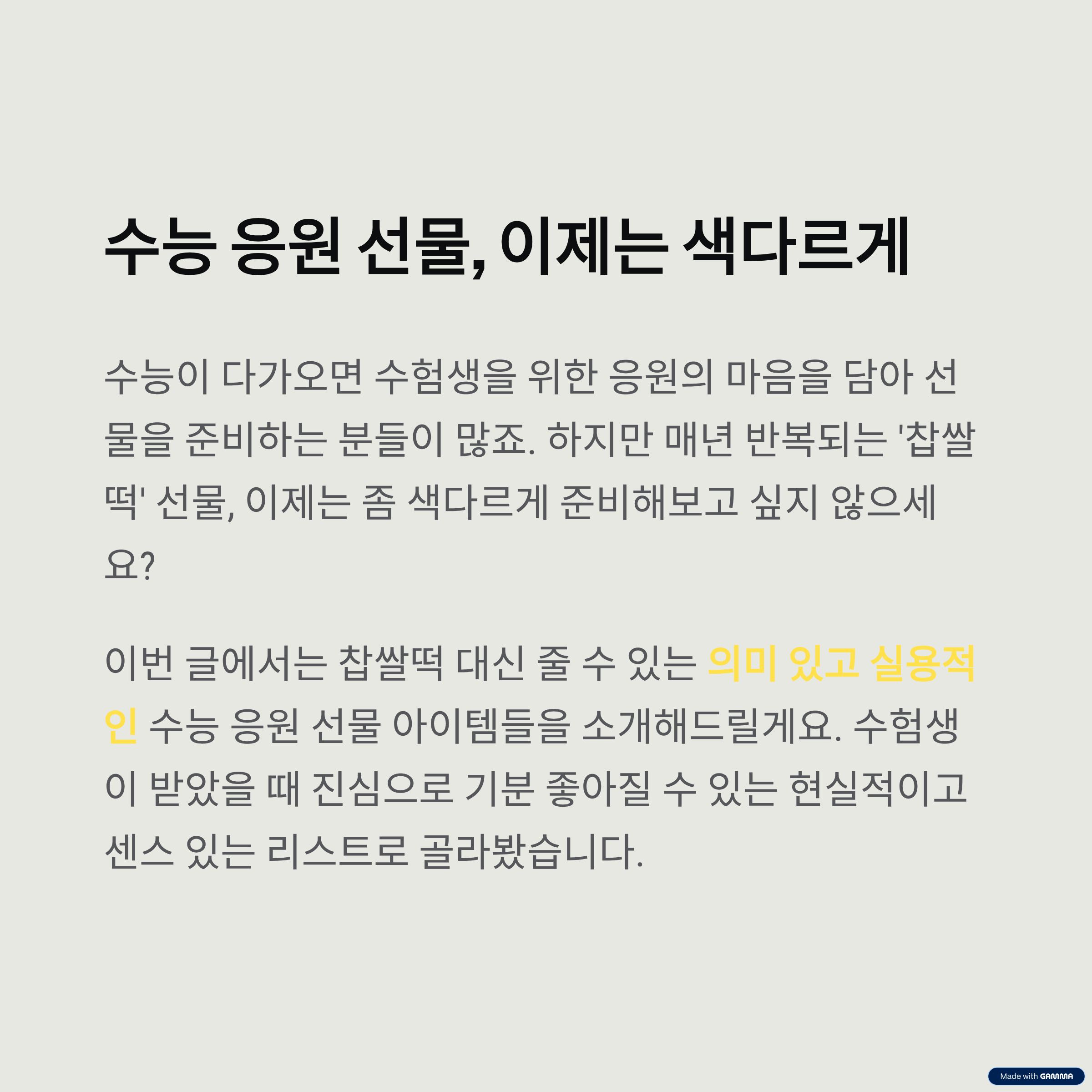 올해는 찹쌀떡 대신, 조금 더 특별하고 따뜻한 응원을 전해보세요.
