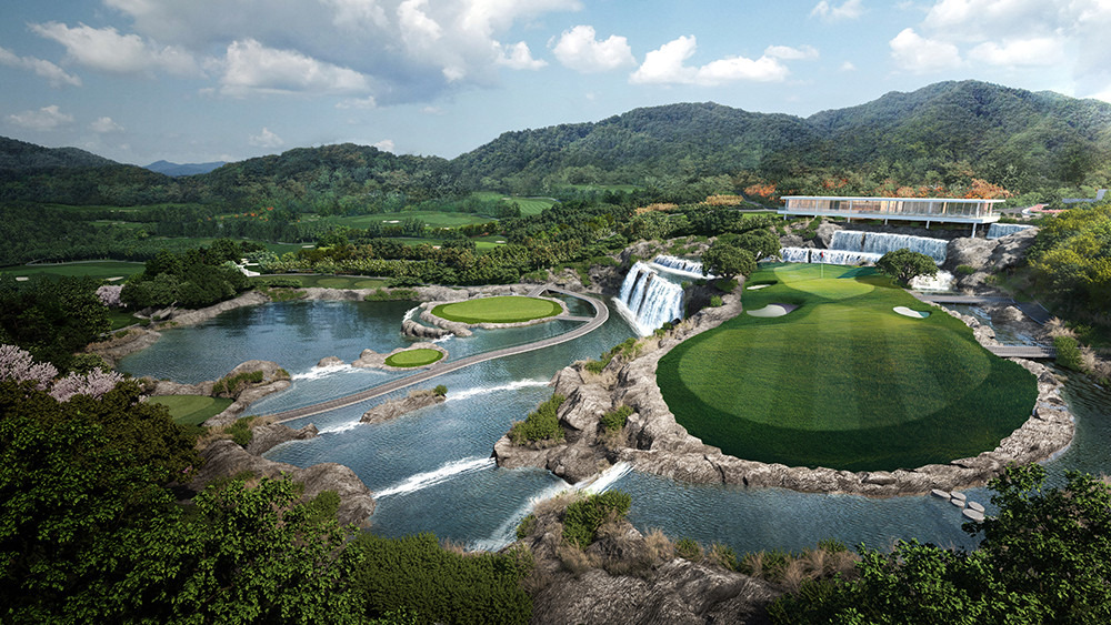 워터 코스는 카스카디아 CC의 시그니처라고 불리는데요. 특히 기네스 등재 예정의 7단 폭포가 큰 주목을 받았습니다. 보기만 해도 시원해지는 경관이 여름과 찰떡이네요!