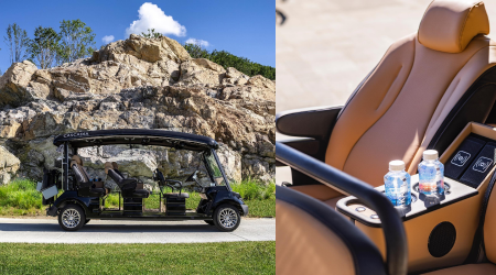 최근 들어, 몇몇 골프장에서 리무진 카트를 볼 수 있는데요. 카스카디아 CC에서도 리무진 카트를 만나 보실 수 있습니다. 6인승 카트로 내부에는 에어컨, 충전기, 냉온 컵 홀더 등이 설치되어 있어 편안한 라운드를 도와준답니다!