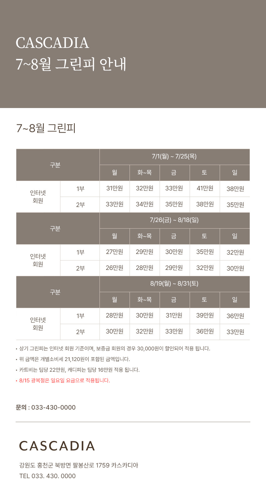 카스카디아 CC ,그린피할인,클럽하우스메뉴가격,7단폭포, 리무진카트 럭셔리골프