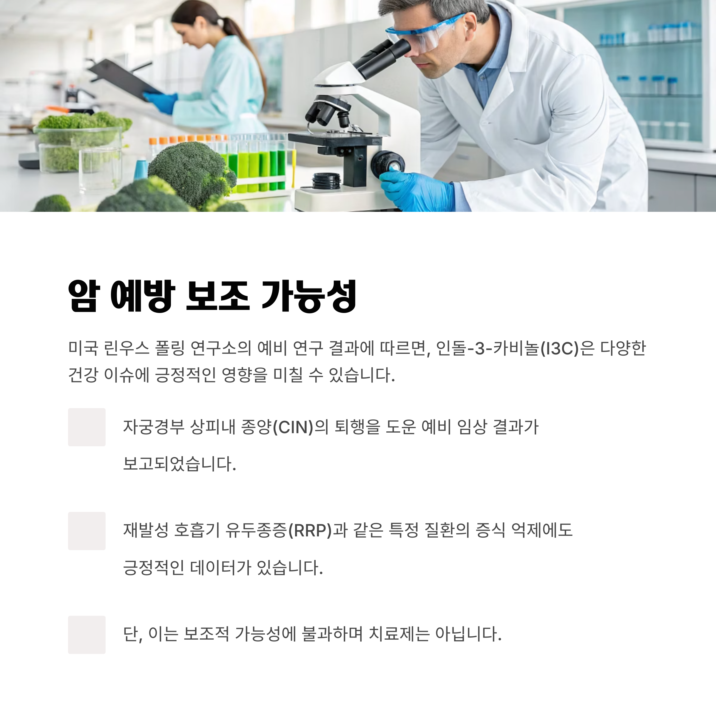 미국 린우스 폴링 연구소에 따르면, I3C는 자궁경부 상피내 종양