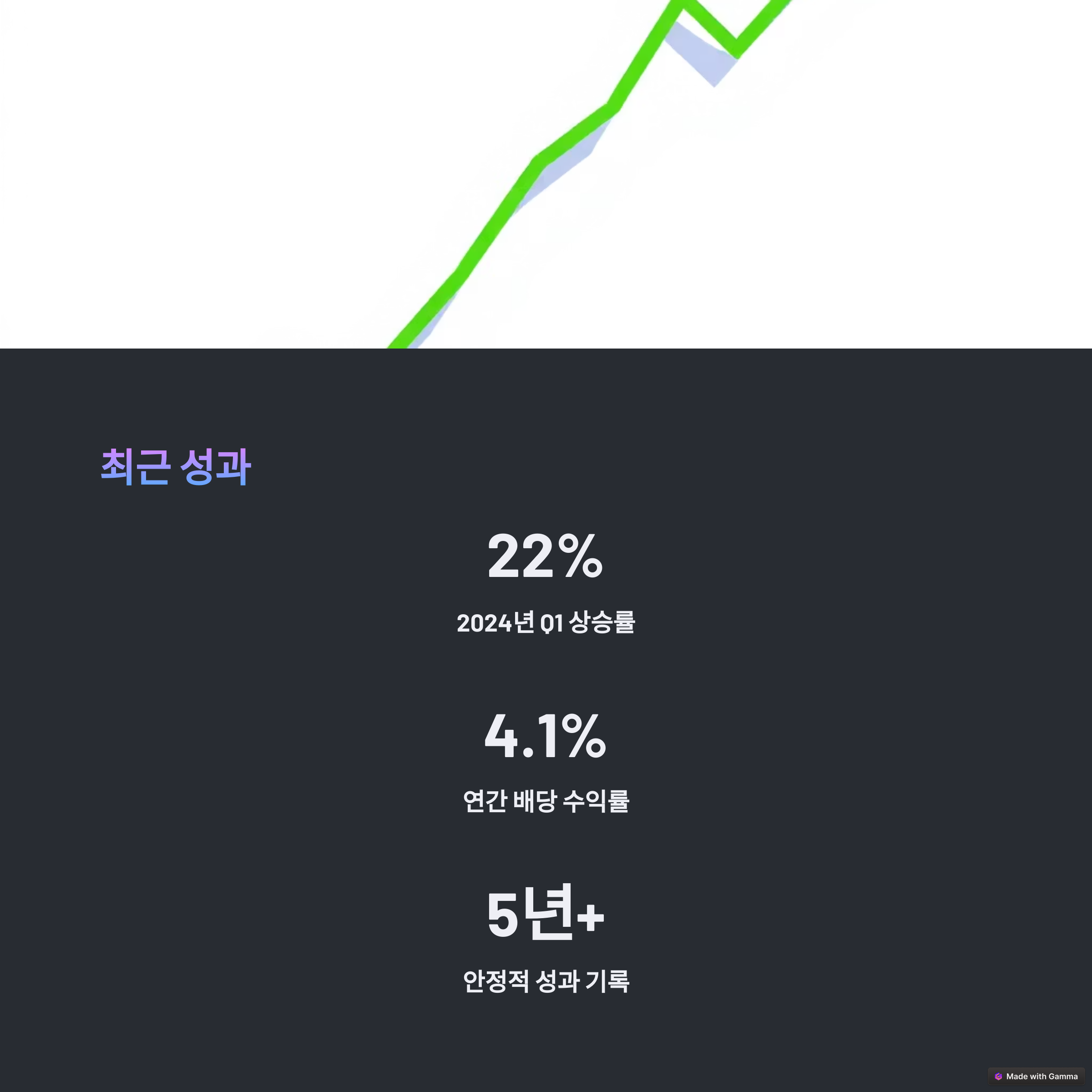 - 분기 배당: 연 4회 배당 지급 (3, 6, 9, 12월)
