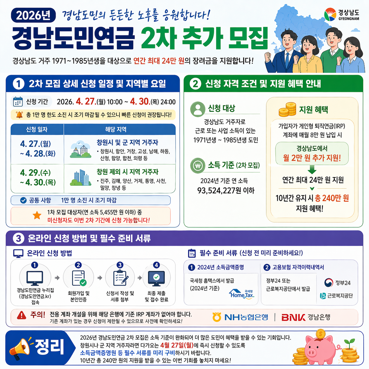 2026년 경남도민연금 2차 추가 모집 일정 및 신청 방법 총정리