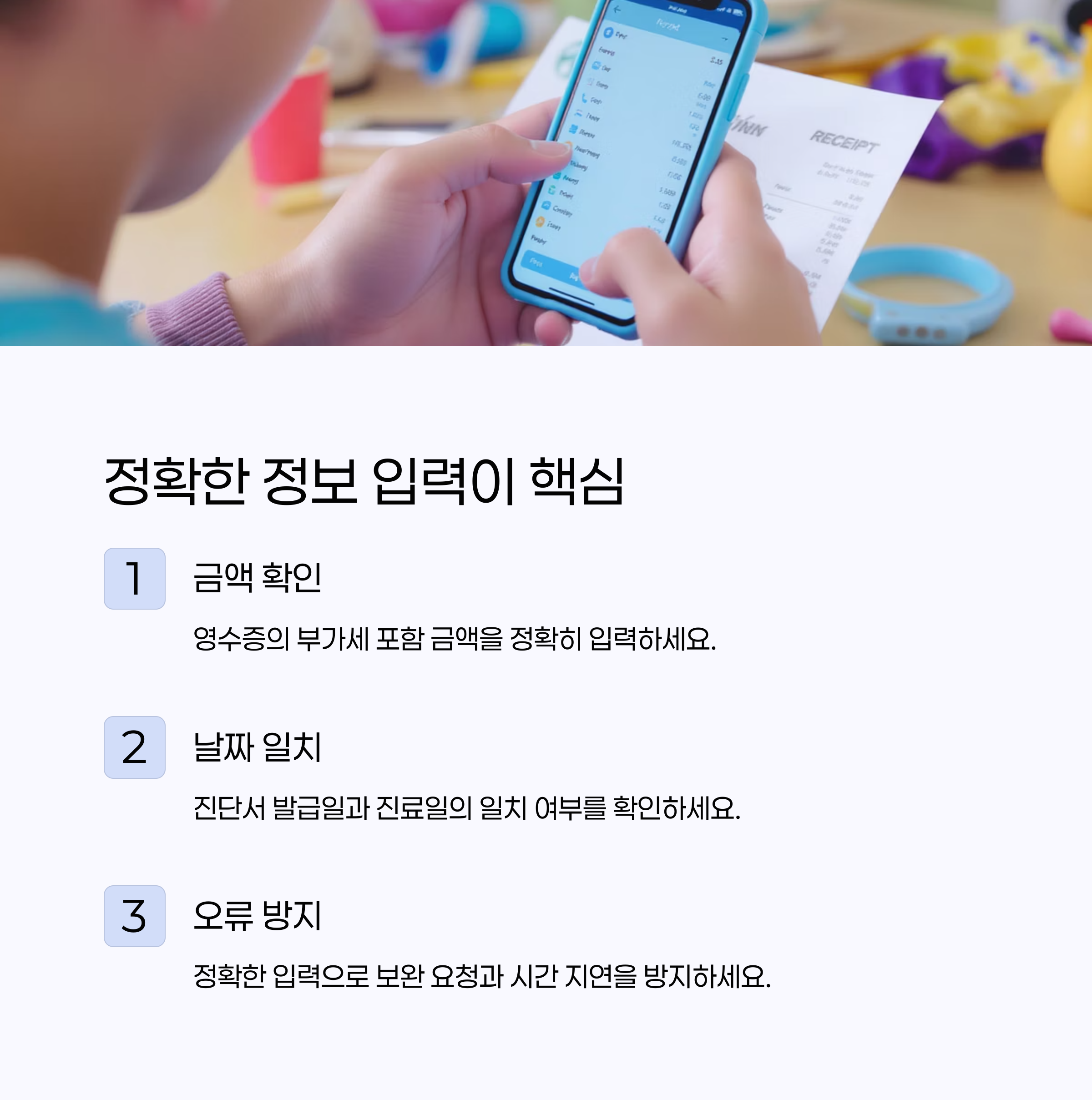 | 금액 정확성 | 영수증 금액과 동일한지 점검 |