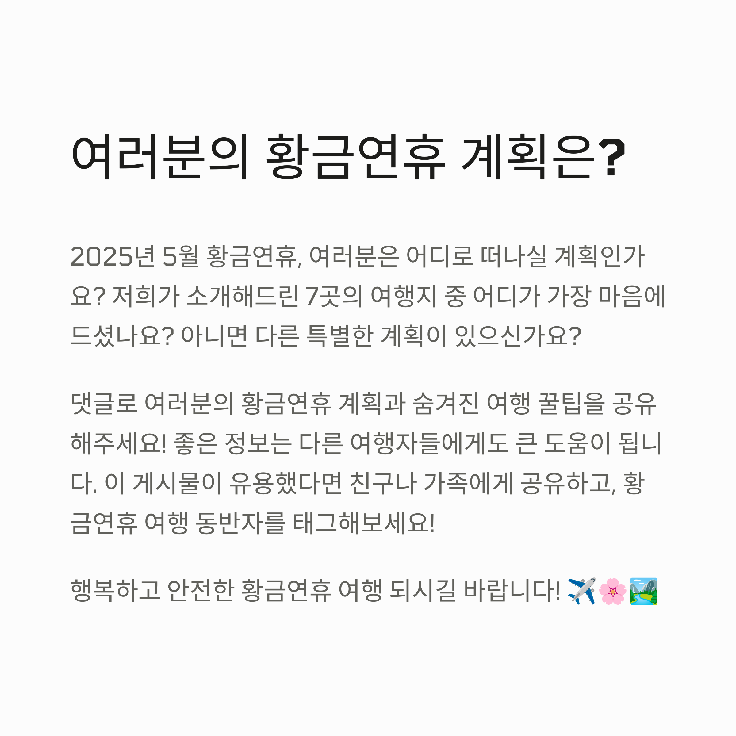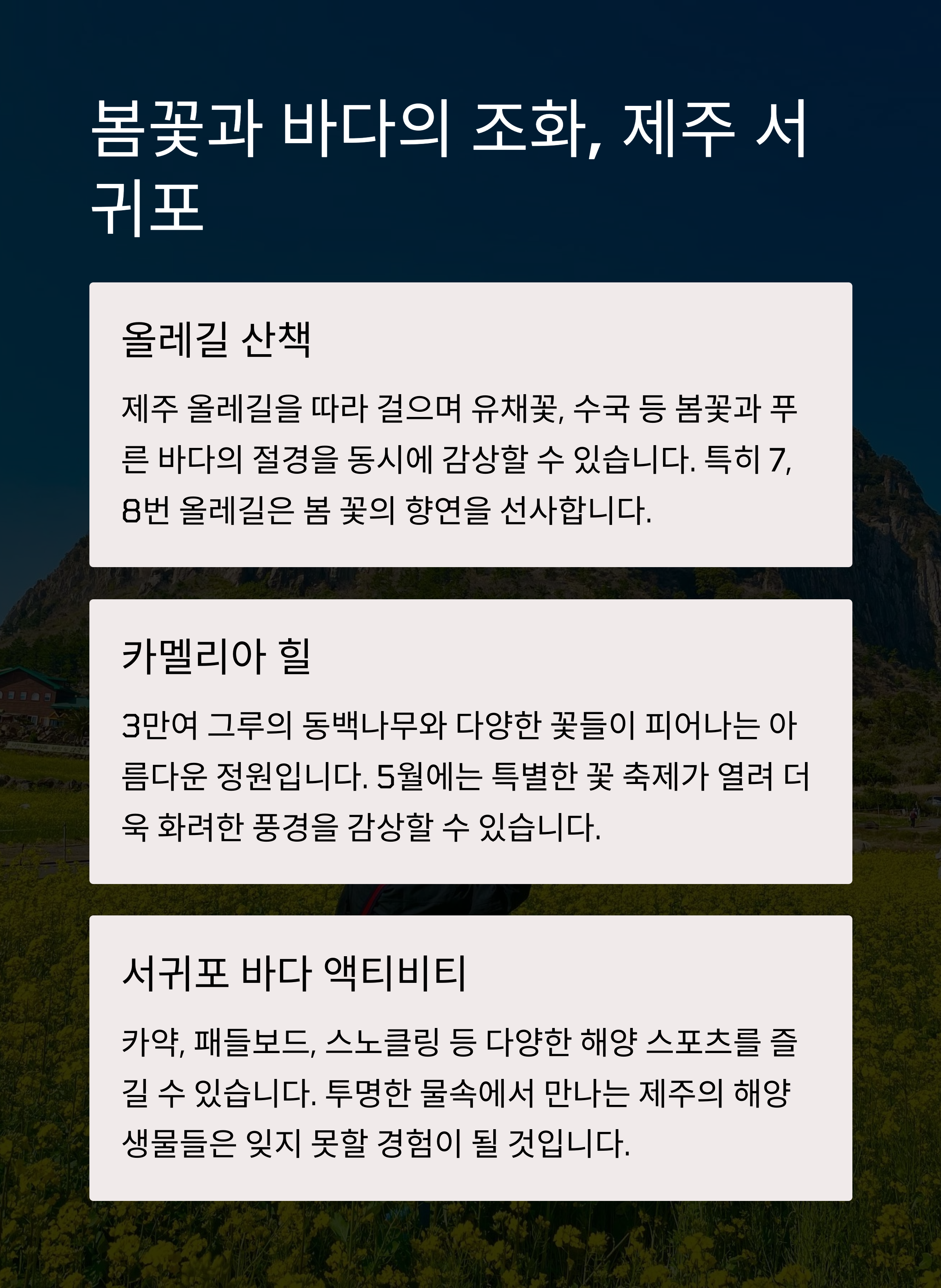 Home 시니어 자동차 라이프/에디터의 여행 및 드라이브 일상 5월 황금연휴 여행지추천 5월 황금연휴 여행지추천 50+에디터 2025. 4. 29. 공유하기 게시글 관리 50+라이프 '시니어 자동차 라이프 > 에디터의 여행 및 드라이브 일상' 카테고리의 다른 글 제주서귀포여행 숙소추천 더시에나 (1) 2025.12.31 벤츠 E클래스 vs BMW 5시리즈 🚘 둘 중 뭐 사야 후회 없을까?! (2) 2025.06.17 관련글 제주서귀포여행 숙소추천 더시에나 벤츠 E클래스 vs BMW 5시리즈 🚘 둘 중 뭐 사야 후회 없을까?! 댓글