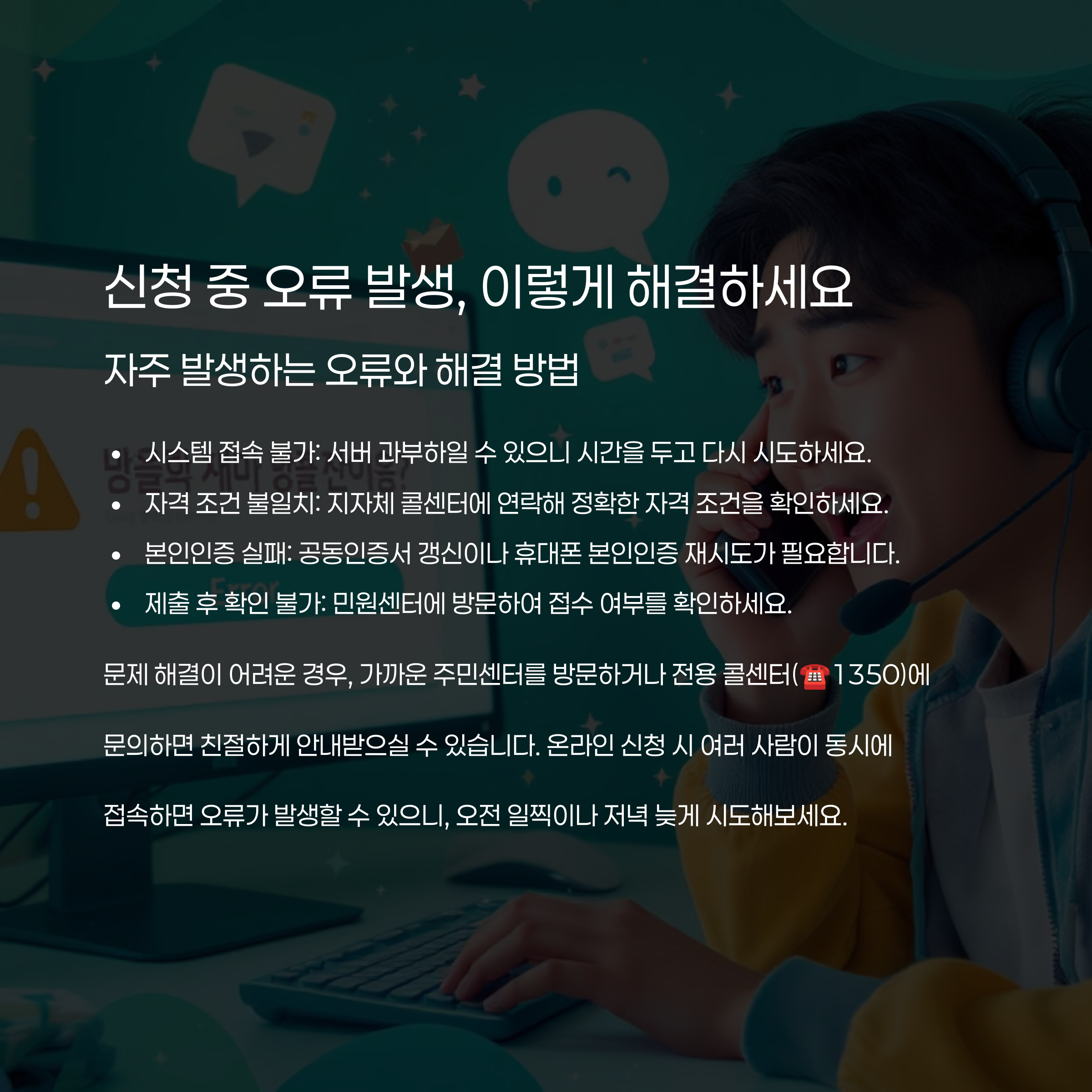 신청 도중 오류가 발생하거나 자격 조건이 맞지 않는 경우,