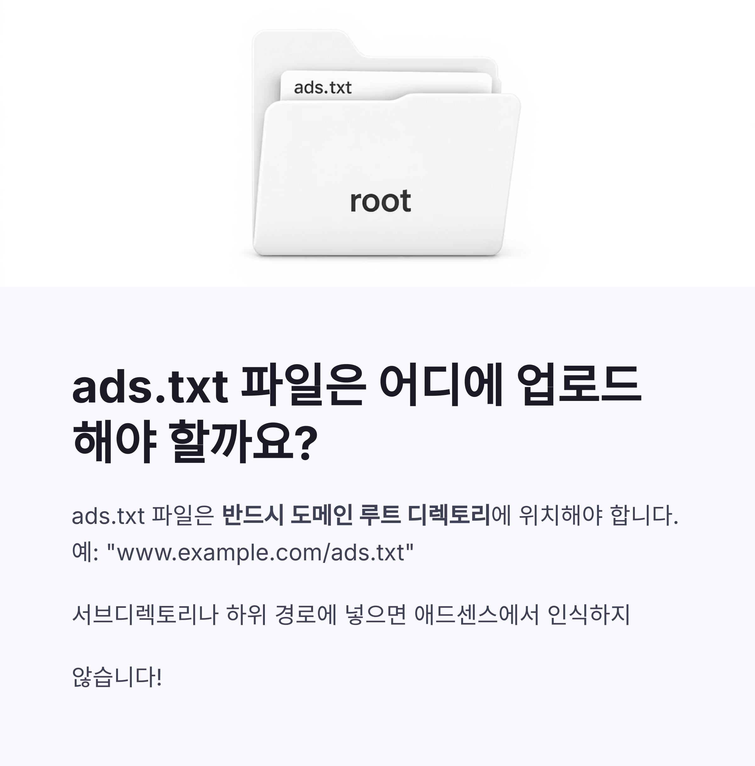 ads.txt 파일은 반드시 도메인 루트(root) 디렉토리에 위치해야 합니다.