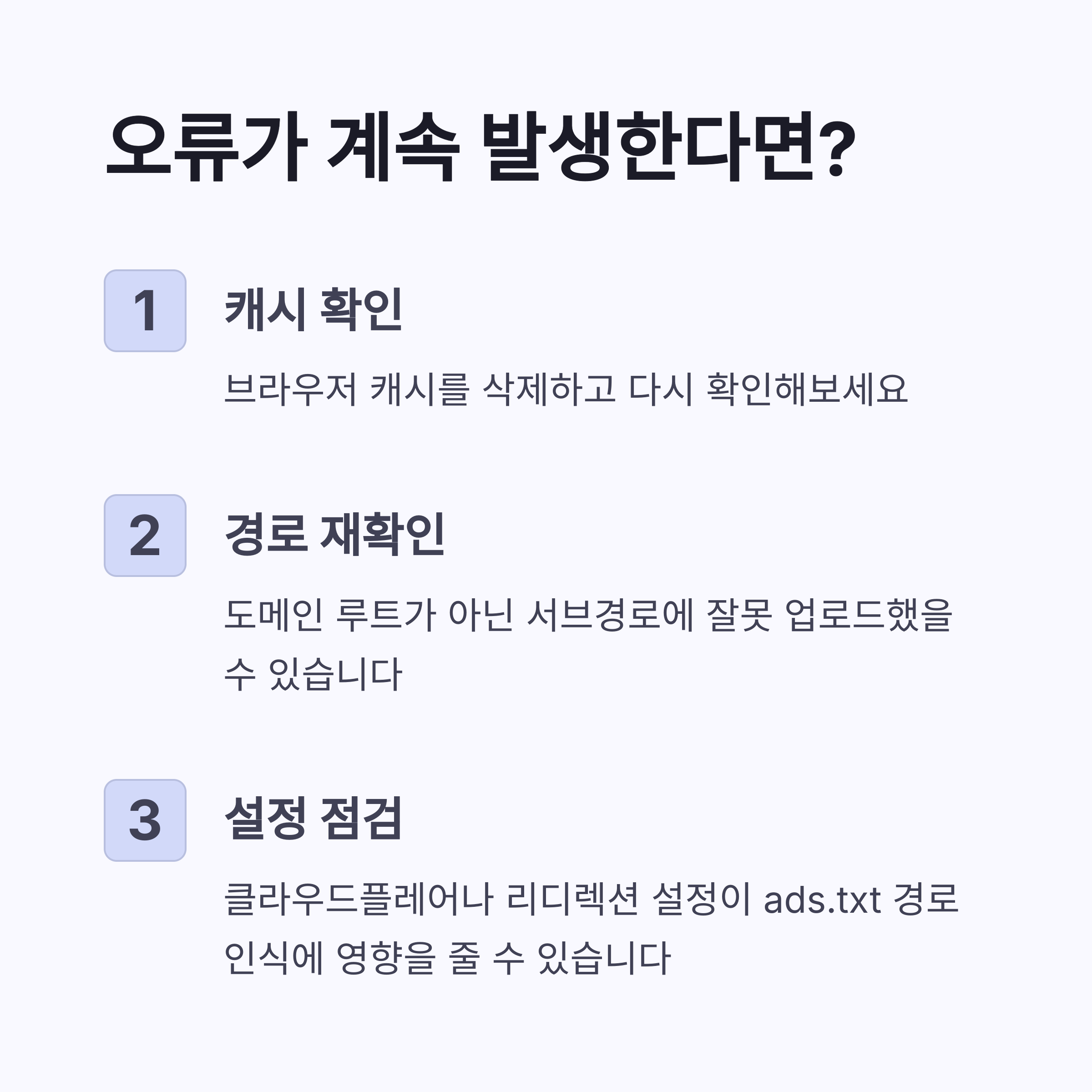 ads.txt 오류가 다시 뜨는 경우, 캐시 또는 경로 확인 필수